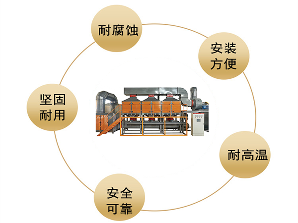 催化燃燒設(shè)備工作原理,在工業(yè)生產(chǎn)過程中,排放的有機(jī)尾氣通過引風(fēng)機(jī)進(jìn)入設(shè)備的旋轉(zhuǎn)閥,通過選轉(zhuǎn)閥將進(jìn)口氣體和出口氣體完全分開。氣體首先通過陶瓷材料填充層(底層)預(yù)熱后發(fā)生熱量的儲(chǔ)備和熱交換,其溫度幾乎達(dá)到催化層(中層)進(jìn)行催化氧化所設(shè)定的溫度,這時(shí)其中部分污染物氧化分解;廢氣繼續(xù)通過加熱區(qū)(上層,可采用電加熱方式或天然氣加熱方式)升溫,并維持在設(shè)定溫度;其再進(jìn)入催化層完成催化氧化反應(yīng),即反應(yīng)生成CO2和H2O,并釋放大量的熱量,以達(dá)到預(yù)期的處理效果。經(jīng)催化燃燒設(shè)備后的氣體進(jìn)入其它的陶瓷填充層,回收熱能后通過旋轉(zhuǎn)閥排放到大氣中,凈化后排氣溫度僅略高于廢氣處理前的溫度,系統(tǒng)連續(xù)運(yùn)轉(zhuǎn)、自動(dòng)切換,通過旋轉(zhuǎn)閥工作,所有的陶瓷填充層均完成加熱、冷卻、凈化的循環(huán)步驟,熱量得以回收。