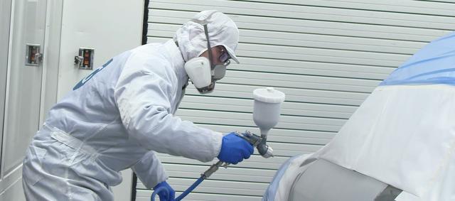 1、檢查鈑金修復(fù)的平整度:首先對要噴漆的部位進(jìn)行檢查是否平整,擦干凈沒有鈑金的噴漆部份,檢查是否有凹陷。2、打磨處理需要補(bǔ)土的部份:用砂輪機(jī)將鈑金邊緣進(jìn)行處理,用砂紙將鈑金周圍磨出羽狀邊,再用砂紙打磨舊漆面,擴(kuò)將欽金周圍培出羽狀邊,冉用砂紙打若舊涂面:擴(kuò)大補(bǔ)土的范圍。3、清潔涂油打磨完成后,清洗干凈打磨位置及噴漆位置。4、中涂,盡量控制中涂底漆在較小的范圍,并注意邊緣位置要漸進(jìn),不要成臺階狀。5、打磨中涂,待中涂底漆干燥固化后,用砂紙打磨中涂底漆,并準(zhǔn)備補(bǔ)土。6、補(bǔ)土,將低凹處的汽車表面用原子灰將其補(bǔ)平,待干打磨。7、研磨,根據(jù)不同的表面形狀選擇不同的打磨方式后將原子灰的邊緣與原車舊漆平穩(wěn)過渡至原車的流水線要求。8、噴底漆 或刮填眼灰對補(bǔ)土處進(jìn)行噴涂底漆或刮填眼灰并平整原子灰的一些小孔和涂物損壞處。9、底漆打磨,對底漆或填眼灰進(jìn)行打磨,平整后用砂紙擴(kuò)大打磨范圍,增強(qiáng)新漆面在舊漆膜上的附著力,完成打磨后便可進(jìn)入噴漆前的準(zhǔn)備。10、吹水遮蔽。對要噴漆的范圍內(nèi)所有的邊緣接口,用壓縮空氣的方式將邊縫內(nèi)的水吹干,對不噴漆的部位進(jìn)行遮蔽。