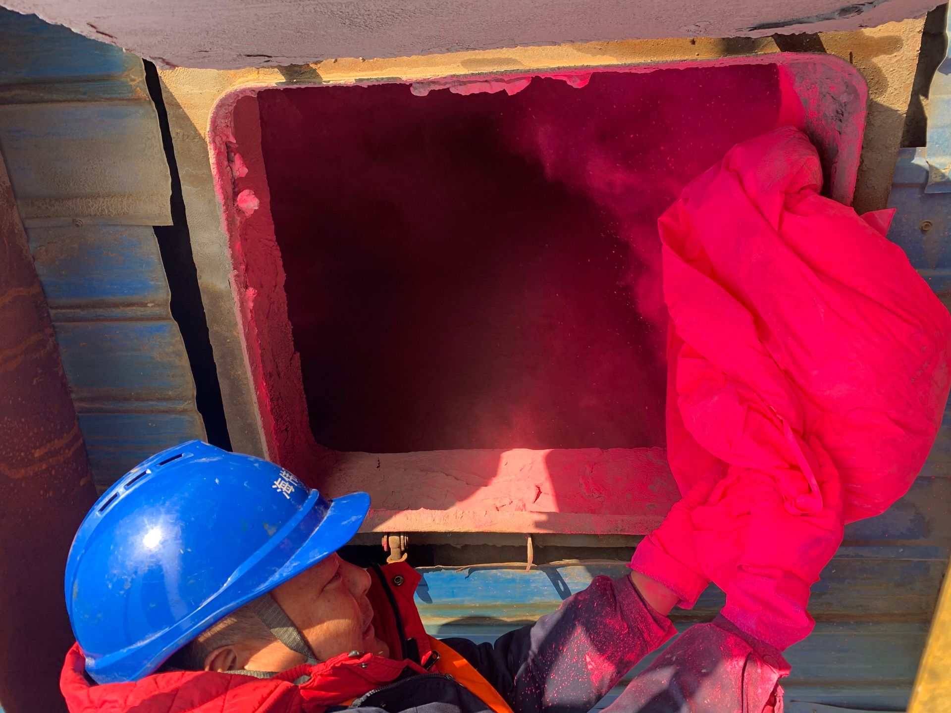 新鄉(xiāng)市利菲爾特濾器股份有限公司的售后技術人員抵達現(xiàn)場后,先對現(xiàn)場煙氣處理設備進行了勘查,確認檢漏熒光粉的投料點,并與業(yè)主溝通確認熒光粉檢漏操作的具體時間。