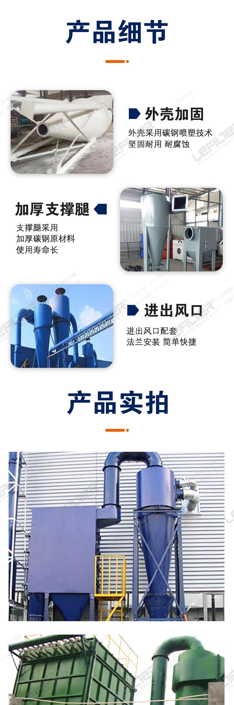 旋風(fēng)除塵器是一種利用旋轉(zhuǎn)氣流產(chǎn)生離心力使煙塵顆粒從氣體中分離出來(lái)的設(shè)備。它的特點(diǎn)是結(jié)構(gòu)簡(jiǎn)單,體積較小,價(jià)格實(shí)惠,方便操作,維修簡(jiǎn)單。動(dòng)力消耗不大,適應(yīng)高溫氣體。但旋風(fēng)除塵器只適用于收集大于10μm的粉塵,對(duì)于小于5μm的微粒捕集效率較低,收塵效率大約在60%-90%。